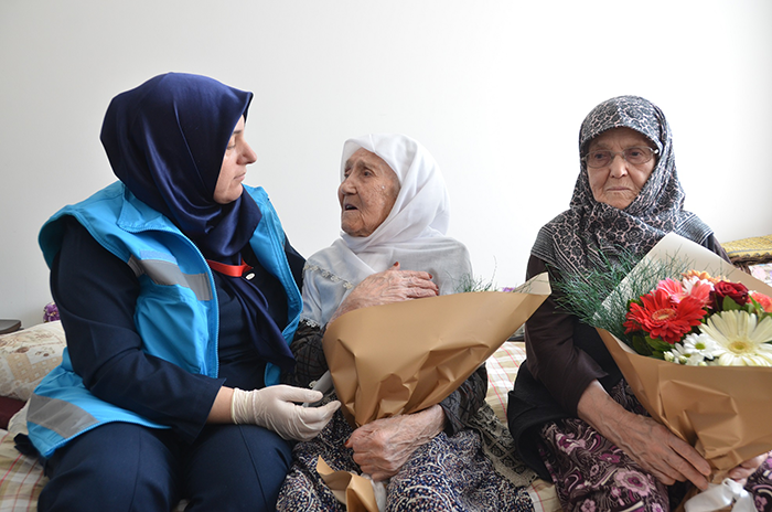 Bursa’da evde sağlık hizmeti alan 102 yaşındaki hasta Nazmiye Sever ve 84 yaşındaki kızı Ömriye Arıcı’yı, Yaşlılara Saygı Haftası kapsamında İl Sağlık Müdürlüğü yöneticileri ve Evde Sağlık Hizmetleri ekipleri ziyaret etti. Bursa İl Sağlık Müdürlüğü Evde Sağlık Hizmetleri ve Sağlıklı Yaş Alma (YAŞAM) bünyesinde Kestel’de evde sağlık hizmeti alan Nazmiye Sever ve kızına ziyaret gerçekleştirildi.