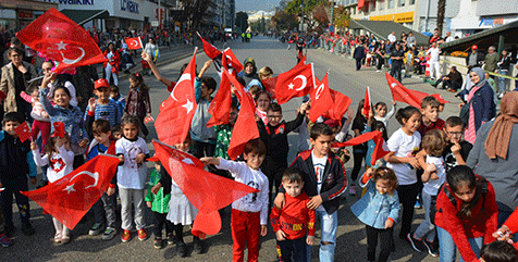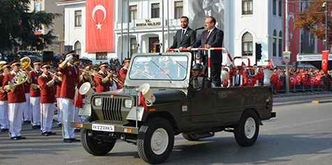 Bursa’daki 29 Ekim Cumhuriyet Bayramı renkli görüntülere sahne oldu. Tören sebebiyle trafiğe kapatılan yollar çocuklara kaldı. Cumhuriyet’in 96’ıncı yıldönümü Heykel Meydanı’nda yapılan törenle kutlandı. Vatandaşların yoğun ilgi gösterdiği kutlamalar, renkli görüntülere sahne oldu. Tören sebebiyle kapanan Atatürk Caddesi çocuklara kaldı. Eline alıkları ay yıldızlı kırmızı balonları sallayan çocuklar boş yolun keyfini çıkardı. Folklor ve kılıç kalkan gösterilerinin ardından tören, kortej yürüyüşü ile devam etti. Cumhuriyet alanı, İnönü Caddesi ve Zafer Meydanı güzergahlarında yapılan kortej yürüyüşüne binlerce lise öğrencisi, polis ve askerler, sivil toplum kuruluşları, bazı odalar ve vatandaşlar katıldı.