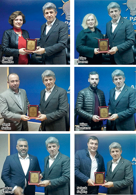 Öte yandan, önceki dönem İlçe Yönetim Kurulu’nda görev alan Nurgül Özatilla, Aliye Elveren, Uğur Harmancı, Selçuk Sağdıç, Seyfi Sevim ve Hakan Çalıbaşı da teşekkür plaketi ile onurlandırıldı. Plaket sunum töreninde konuşan Başkan İşcan, “Kutsal yolda birlik ve beraberlik içinde yürüdüğümüz çalışma arkadaşlarıma şükranlarımı sunar, özverili ve başarılı hizmetlerinden dolayı teşekkür ederim. Yine hep birlikte inandığımız yolda yürümeye devam!” dedi.