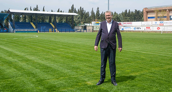 M. Fehmi Gerçeker Stadyumu’nda açıklamalarda bulunan Başkan Özkan, “Şu anda, Karacabey’imizin medarı iftarı Karacabey Belediyespor’un maçlarının oynandığı stadyumdayız. Tüm Türkiye’de ve dünyada olduğu gibi Karacabey’de de stadyumlar sessiz. Bildiğiniz gibi biz göreve geldiğimiz 2014 yılında Karacabey Belediyespor, 2. Amatör Küme’de mücadele veren bir takımdı. Sırasıyla 2. Amatör’den 1. Amatör Küme’ye, Süper Amatör’den BAL Ligi’ne ve ardından da 3. Lige çıkma imkânına kavuştuk. Şu anda da 3. Lig 3. Grup’ta sezonun bitimine 6 maç kalmasına rağmen 19 puan farkla açık ara lideriz. Şampiyonluk turu atmak için maçların başlamasını bekliyoruz. İnşallah futbolcularımız ilk maçta şampiyonluk turunu atacaklar. Tabii ki seyircimiz olursa bunu stadyumda hep beraber paylaşacağız. Karacabey, coşkulu bir şekilde öncelikle bu küresel krizin, koronavirüsle mücadelenin başarıyla sona ermesini bekliyor. Ondan sonra da normal faaliyetlere devam edileceği için sportif müsabakalar da başlayacak. Bizler bu günleri tabiri caizse iple çekiyoruz, bu mutluluğu yaşamak istiyoruz.” dedi.
