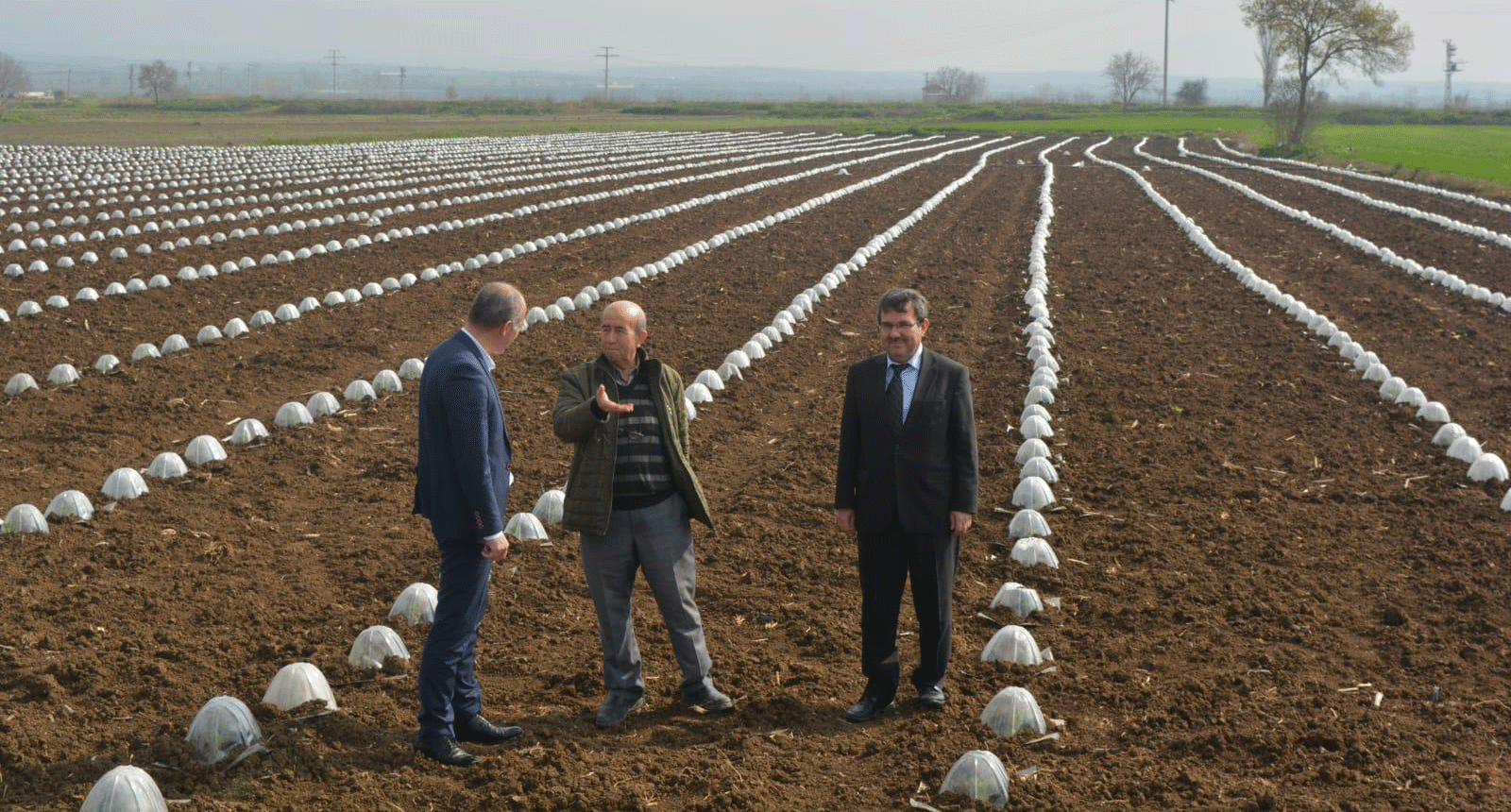 Karacabey’de bitkisel üretim faaliyetleri devam ediyor. Bursa İl Tarım ve Orman Müdür Yardımcısı Erdoğan Ceylan ile Karacabey İlçe Tarım Müdürü Cemer Erken, bitkisel üretim faaliyetleri kapsamında karpuz, soğan, pancar ekimi yapan çiftçilerle arazide bir araya geldi.