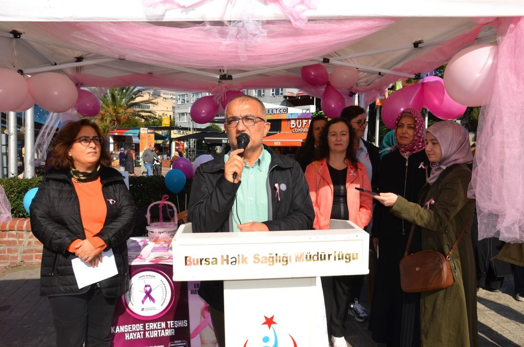 Yürüyüşün ardından Zafer Meydanı’nda konuşan Bursa Halk Sağlığı Hizmetleri Başkanı Dr. İrfan Oğuz, meme kanseri konusunda toplumsal bir bilinç oluşturabilmek adına etkinliği düzenlediklerini söyledi. Meme kanserinin kadınlarda kanser türlerinin içerisinde ölüm nedenlerinde ilk sıralarda geldiğini hatırlatan Dr. Oğuz, “Bu çerçevede bizler de geçen sene sağlıklı hayat merkezlerimiz ve ikinci basamak kuruluşlarımızda 276 binden fazla kişiye kanser taraması yaptık. Bunların arasında meme kanseri, kolorektal ve rahim ağzı kanseri olmak üzere, 210 kişide kanser erken dönemde teşhis edildi. İşin sadece mali boyutunu düşünsek bile bir kanser hastasını erken dönemde yakalamak hem hasta, hem devletimiz için birçok mali yükten kurtulmak demektir. Bunun yanında kanser hastalığının sosyal ve psikolojik kısımları da fazlasıyla yıpratıcı olmaktadır” diye konuştu.