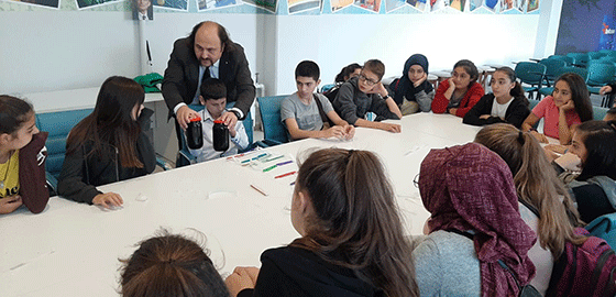 Bursa Büyükşehir Belediyesi’nin vizyon projelerinden, dünyanın sayılı bilim merkezlerinden biri olan Bursa Bilim ve Teknoloji Merkezi (BTM), örnek olmaya devam ediyor. Çocuklar ve gençler başta olmak üzere toplumun her kesiminin bilim ve teknolojiye ilgisini çekmek, kolay anlaşılır ve eğlenceli bir şekilde bilimsel konuları sunmak amacıyla hizmet veren Bursa Bilim ve Teknoloji Merkezi, “herkes için bilim” anlayışıyla önemli bir sosyal sorumluluğu yerine getiriyor. Mithat Enç Özel Eğitim Ortaokulu’nda eğitim gören görme engelli 3. ve 4. sınıf öğrencileri, Bursa Bilim ve Teknoloji Merkezi’nde, Kafkas Üniversitesi Öğretim Üyesi Doç. Dr. Mustafa Şahin Bülbül ile atölye çalışması gerçekleştirdi.