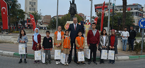 Daha sonra İlçe Milli Eğitim Müdürlüğü tarafından okullarda düzenlenen resim, şiir ve kompozisyon yarışmalarında dereceye giren öğrenciler ile Gençlik ve Spor İlçe Müdürlüğü tarafından düzenlenen Cumhuriyet Kupası Atletizm yarışmasında dereceye giren öğrencilerin ödülleri protokol tarafından takdim edildi.