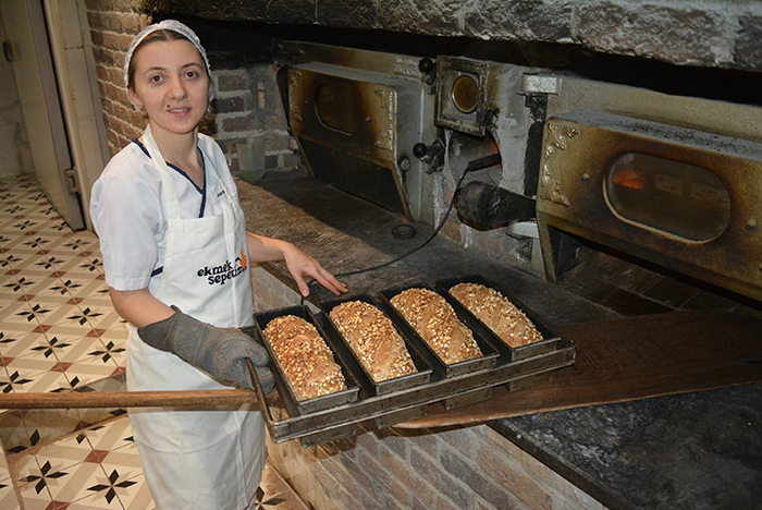 Yalnızca kadınların istihdam edildiği Ekmek Sepetim’in Sırabademler Mahallesi 147 Sokak’taki üretim ve satış merkezinde görüştüğümüz Ekmek Şefleri Canan Ongun, Nagehan Yeşil ve Sultan Kabataş Em, ekşi mayalı ekmek üretimini uygulamalı olarak anlattı.