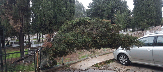 Karacabey’de önceki gün etkisini gösteren yağışlı hava ve şiddetli rüzgar ilçede ağaçların devrilmesine neden oldu. Meteoroloji Genel Müdürlüğünün yaptığı uyarıların ardından yağışlı hava ve şiddetli rüzgarın etkisini gösterdiği fırtına Karacabey’de zor anların yaşanmasına sebep oldu. Bazı noktalarda evlerin çatıları uçarken, bazı noktalarda ise rüzgar ağaçları devirdi. Çatı uçması ve ağaçların devrilmesi nedeniyle zor anlar yaşanırken, şans eseri yaralanan olmadı. Bazı noktalardaki ağaç devrilmeleri nedeniyle araçlar hasar görmekten son anda kurtuldu. İHA