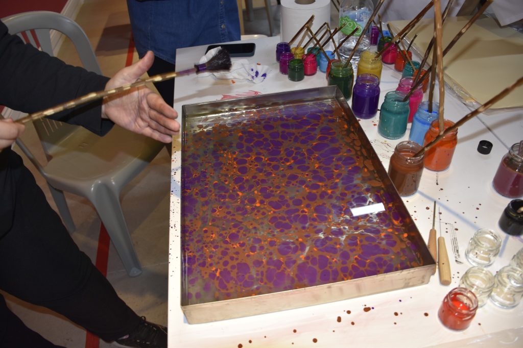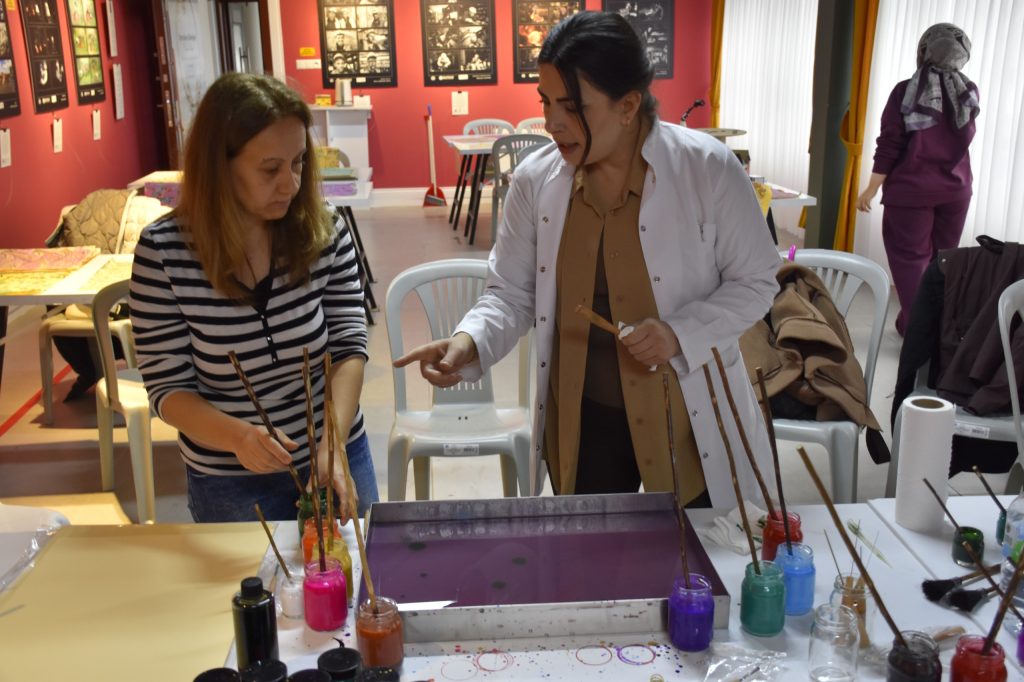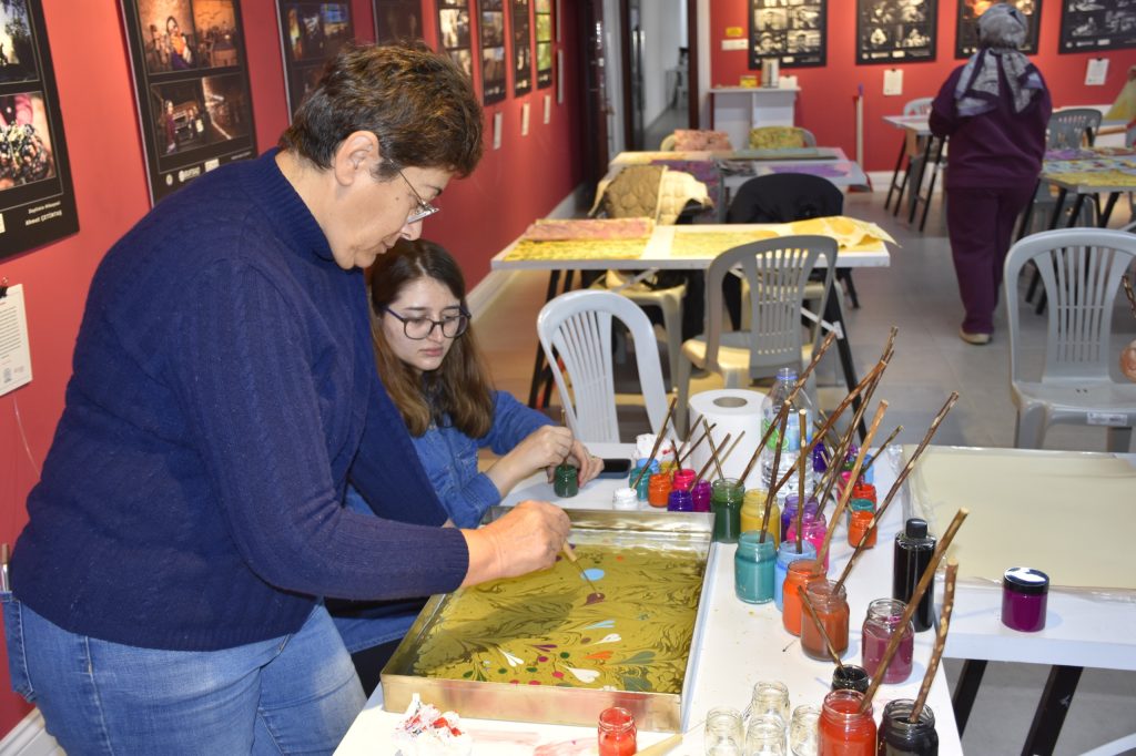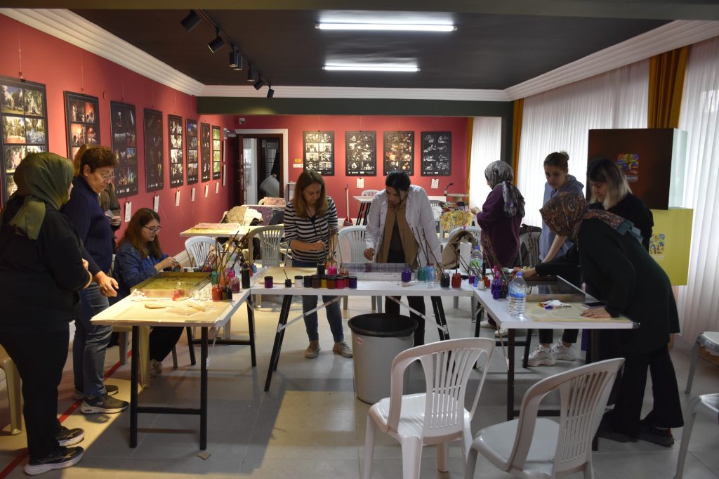 Belediye İş Hanı Sanat Atölyesi’nde düzenlenen kurs, sabah 09.00-14.00 ve öğleden sonra 14.00-19.00 saatleri arasında iki grup halinde devam ediyor. Toplam 30 kursiyerin katılımıyla yürütülen eğitimlerde, renklerin su üzerindeki büyülü dansı ile sabır, estetik ve zarafet iç içe geçiyor.