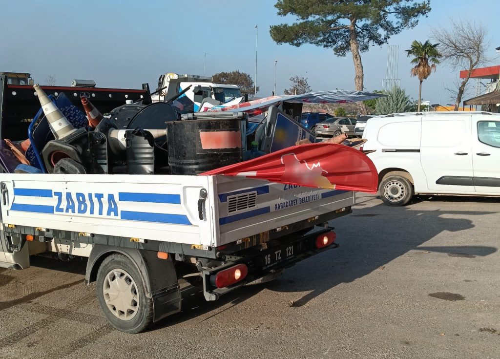 Karacabey Belediyesi Zabıta Müdürlüğü ekipleri, ilçe genelinde kaldırım ve yol işgallerine karşı geniş kapsamlı bir temizlik ve düzenleme çalışması başlattı. Yürütülen uygulama kapsamında, kaldırım üzerinde yaya ve araç trafiğini engelleyen flama, varil, duba, masa, sandalye ve benzeri malzemeler tek tek tespit edilerek kaldırıldı.