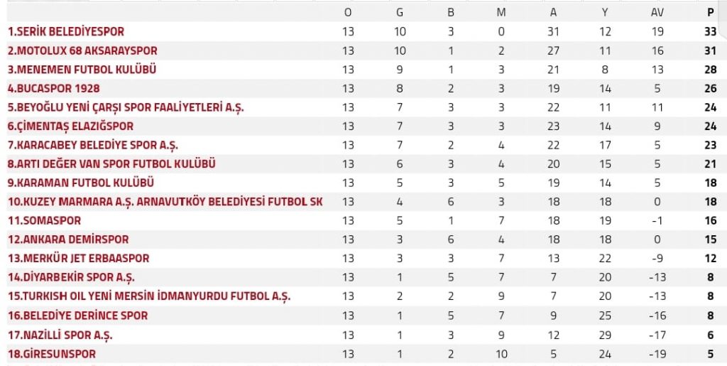 TFF 2’nci Lig Kırmızı Grup 13’ncü hafta mücadelesinde temsilcimiz Karacabey Belediyespor, hafta sonu sahasında konuk ettiği Nazillispor’u 3-0 mağlup etti. Bu sonuçla 23 puanla 7. sırada yer alan mavi siyahlılar, Play Off iddiasını sürdürüyor. Karaca ayrıca, ligin yeni lideri Serik Belediyespor’un da 10 puan gerisinde bulunuyor.