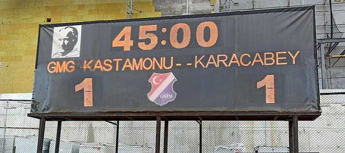 Maçın ikinci yarısı çekişmeli geçerken, mavi siyahlı temsilcimiz farkı artıracak pozisyonlar bulsa da bunları değerlendiremedi. 56. dakikada Karacabey Belediyespor’da İlyas’ın kırmızı kart görmesi sonrası dengeler değişti ve ev sahibi beraberlik için ataklarını sıklaştırdı. 70. dakikada ise GMG Kastamonuspor’lu oyuncu Faruk Öcal, Karacabey Belediyespor filelerini havalandırarak maçta dengeyi sağladı. 1-1