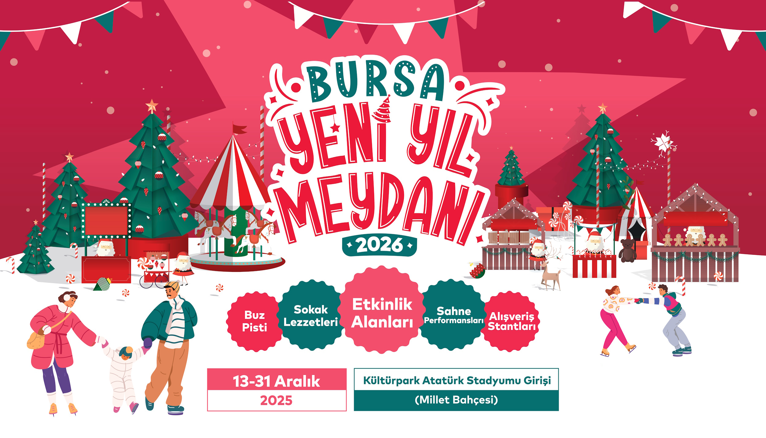 Vatandaşların huzur ve güven içerisinde 2026’yı karşılayabilmeleri için Bursa Kültür AŞ ve ilgili birimleriyle hazırlıklarını sürdüren Bursa Büyükşehir Belediyesi, yeni yılın büyük bir coşkuyla karşılanması için Eski Atatürk Stadyumu alanında ‘Bursa Yeni Yıl Meydanı’nı oluşturdu. Yeni Yıl Meydanı, 13-31 Aralık tarihlerinde gerçekleştirilecek olan birbirinden eğlenceli etkinlikler, özel tasarlanmış stantlar, tematik alanlar, ışıklandırmalar ve aktivitelerle kentin sosyal yaşamına önemli bir katkı sağlayacak.