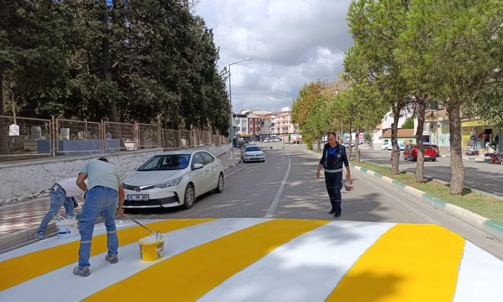 KARACABEY’DE OKUL ÖNLERİNDEKİ YAYA GEÇİTLERİ YENİLENİYOR
