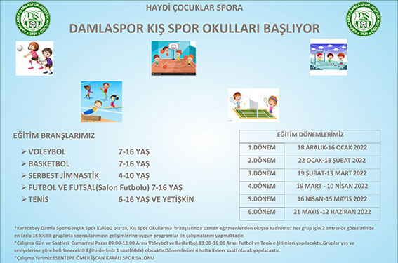 Karacabey’de 6 Kasım 2021 tarihi itibariyle resmi kuruluşunu tamamlayan Damlaspor Gençlik Spor Kulübü, bu doğrultuda ilk faaliyetine de hızlı başladı. Kış Spor Okulları’nın startını veren Damlaspor,...