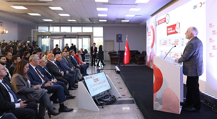 Kızılay Genel Başkanı Dr. Kerem Kınık, Kızılay’ın İstanbul’daki Sütlüce Yerleşkesi’nde düzenlediği basın toplantısında 2022 yılı faaliyetleri ile 2023 yılı hedefleri hakkında bilgi verdi. “2022 yılı bizim için faaliyetlerle dolu bir yıl olarak geçti. Bu toprakların merhametini ihtiyaç sahibi insanlarla buluşturmaya gayret ettik” diye konuşan Dr. Kerem Kınık, “2022 yılında Kızılay’ımız 43 milyon 476 bin 25 kişiye ulaştı. Bunun 32 milyon 518 bin 500’ü yurt içinde. 10 milyon 957 bin 525’i ise yurt dışında oldu. Bunlar insani yardım faaliyetlerimiz sağlık ve eğitim yardımlarımız geçimlik kaynaklarla ilgili yardımlarımız kan hizmetleri konusundaki yardımlarımız. Bunu 2 milyon 985 bin 687 bağışçımızdan nakdi ve kan bağışı olarak aldık. Bunun için 2022 yılında 11 milyar 482 milyon 686 bin 241 lira kaynak kullandık. Bu büyük operasyonu yürütürken 15 bin 530 Kızılay çalışanı 239 bin 128 gönüllü ise yaklaşık 254 bin 658 insan gücüyle bu büyük operasyonu 2022 yılında başardık.” ifadelerini kullandı.
