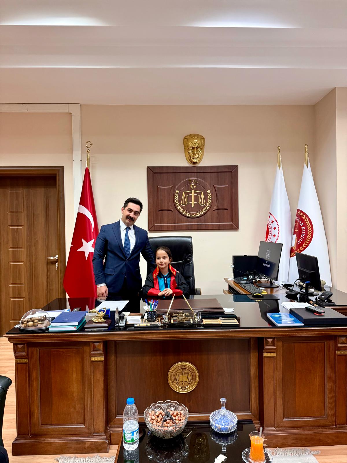 “Buraya geldiğim için çok mutluyum. Başsavcımızın koltuğuna oturunca kendimi çok güçlü ama bir o kadar da sorumlu hissettim. İnsanların haklarını korumak ve adaletli olmak çok önemli bir görevmiş. Ben de büyüyünce hakim ya da savcı olup herkesin hakkını savunmak istiyorum.”