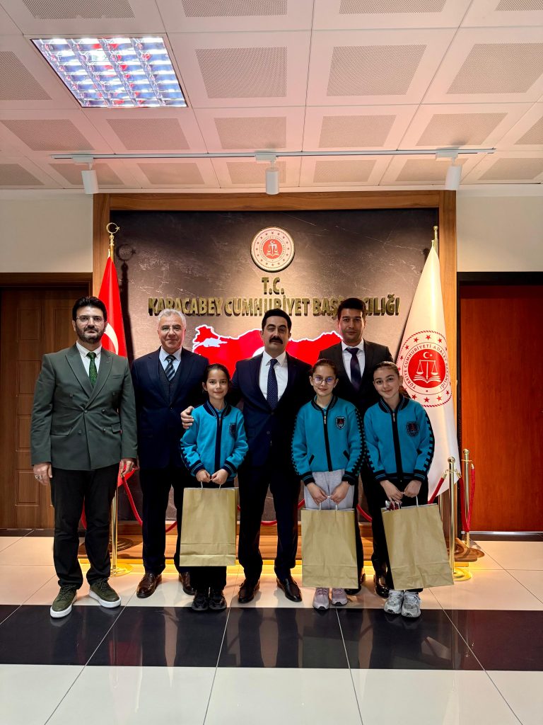 23 Nisan Ulusal Egemenlik ve Çocuk Bayramı kutlamaları kapsamında, Karacabey Hacı Ahmediye İlkokulu 4. sınıf öğrencileri, Karacabey Cumhuriyet Başsavcısı Batuhan Kılınç’ı ziyaret etti. İlçe Milli Eğitim Müdürü Muhammet Ali Erbir’in de katıldığı ziyarette, Başsavcılık makamı kısa süreliğine geleceğin hukukçularına emanet edildi. Ziyaret sırasında öğrencilerle yakından ilgilenen Başsavcı Kılınç, çocukların bayramını kutlayarak onlara yargı sisteminin işleyişi hakkında bilgiler verdi.