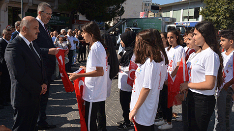 Konuşmalar sonrası, bu yılki programda diğer yıllardan farklı olarak kurtuluş şehitleri adına Karacabey’in iki yakasından öğrenciler Türk bayrakları ile koştu. 14 Eylül günü şehit edilen Taşlık Köyü şehitleri ile Canbalı Köprüsü’nün onarımında şehit olan askerleri anmak için düzenlenen koşu, tören alanında son buldu. Ardından koşuya katılan öğrenciler, ellerindeki Türk bayraklarını Kaymakam Dr. Yusuf Gökhan Yolcu ile Belediye Başkanı Ali Özkan’a teslim etti.
